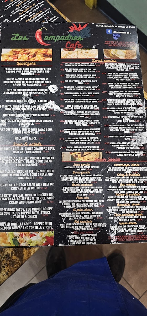 Welcome to Los Compadres Cafe, a delightful Mexican eatery nestled in Norman, Oklahoma. This hidden gem is celebrated for its warm hospitality and an extensive menu that promises to satisfy every craving. Diners rave about the homemade salsa that complements the flavorful dishes, such as tamales, enchiladas, and tacos, which are served generously. The portions are designed for hearty appetites, ensuring you leave satisfied.
